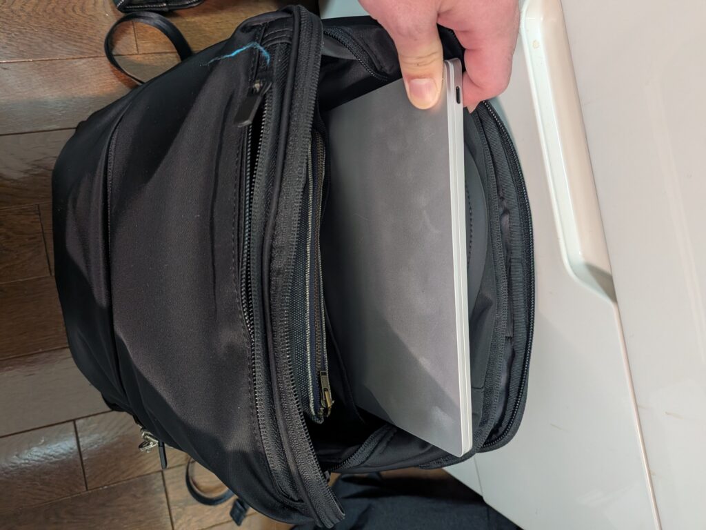 これだけ薄いと小さめのカバンにも何とかPC2台を入れることも可能です。私の場合は14Lのガジェタブルという小さ目なカバンにも何とか収納できています。